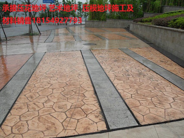 藝術地坪壓模地坪壓花地坪是具有較強的藝術性和特殊裝飾要求的地面材料。它是一種即時可用的含特殊礦物骨料,無機顏料及添加劑的高強度耐磨地坪材料。其優點是易施工、一次成型、使用期長、施工快捷、修復方便不易褪色等,同時又彌補了普通彩色道板磚的整體性差、高低不平、易松動、使用周期短等不足。