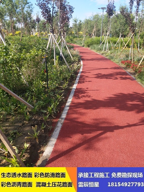 施工彩色防滑路面按甲方要求施工一般是5-8CM厚度*佳,新疆雷辰恒星*施工彩色防滑路面!希望大家多了解咨詢!疆內常年承接道路防滑路面、彩色道路透水施工、坡道防滑顆粒施工、海綿城市道路施工等等。
