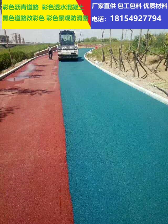 3..彩色瀝青路面是將普通瀝青進行脫色瀝青處理后再加入其它顏料攪拌而成的混合物,*后再加上石料混合染色鋪裝;彩色瀝青路面具有較強的吸音功能、柔性、色澤鮮艷持久和良好彈性等優點。彩色瀝青路面同時還具有普通瀝青的特性,因此在施工時可以按照普通瀝青的施工方法施工。